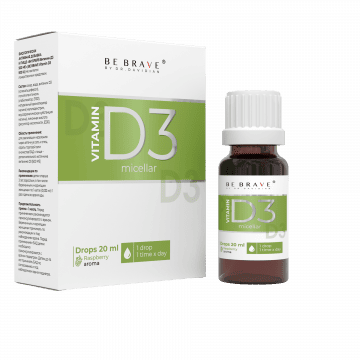 ❮ ❯ Витамин D3 Детский Мицеллярный BE BRAVE® Vitamin D3 Сделано в Турции Мицеллярный витамин D3 в каплях Форма выпуска Капли Количество 390 шт Активная форма Холекальциферол Хватит на 13 мес 348 ₽ х 4 платежа 1 390 ₽ В наличии, Бесплатная доставка Нашли дешевле? x Где-то дешевле? 🤨 Не торопитесь там покупать! Этому всегда есть причина (срок годности или неверное хранение) Пришлите нам скрин или ссылку - сделаем дешевле и гарантируем качество! + всегда бесплатная доставка Отправить в MAX Отправить в Telegram Ещё мы свяжемся с продавцом нашего продукта (анонимно 😉): проверим подлинность и установим причину уценки Будьте бдительны и здоровы ❤️ Спасибо ИнструкцияСоставОписаниеДокументацияВидео-описание БАД - не является лекарственным средством Форма выпуска Жидкость во флаконе с дозатором капельницей, по 20 мл во флаконе Область применения Для реализации населению через аптечную сеть и специализированные отделы торговой сети в качестве биологически активной добавки к пище – дополнительного источника витамина D3 Рекомендации по применению Взрослым и детям с 3-х лет по 1 капле (0,032 мл/500 МЕ) 1 раз в день в день во время еды. В том числе беременным и кормящим женщинам Противопоказания Индивидуальная непереносимость компонентов БАД Условия хранения Хранить в недоступном для детей месте при температуре не выше +25°С Срок годности 2 года Состав Cахар, вода, витамин D3 (холекальциферол), полиэтиленгликоль (стабилизатор, Е1521), натуральный ароматизатор малина (мальтодекстрин, вкусоароматическая субстанция малины), лимонная кислота (регулятор кислотности, ЕЗЗ0) Показатель Содержание в единице (Капли) Витамин D3 500МЕ Витамин D3 Детский Мицеллярный (холекальциферол) в каплях Витамин D3 – это один из важнейших витаминов для здоровья детей. Он играет ключевую роль в развитии костной ткани, поддержании иммунной системы и нормальном росте ребенка. Витамин D3 особенно необходим детям в период интенсивного роста, чтобы избежать дефицита кальция и связанных с ним проблем. Почему детям важен витамин D3? Формирование крепких костей и зубов Витамин D3 помогает организму усваивать кальций и фосфор, необходимые для роста и укрепления костной ткани. Его недостаток может привести к рахиту — серьезному нарушению формирования костей у детей. Поддержка иммунитета Детская иммунная система активно развивается, и витамин D3 помогает ей работать эффективно. Он способствует защите от вирусных и бактериальных инфекций, снижая риск простудных заболеваний. Правильное развитие организма Витамин D3 участвует в поддержании баланса гормонов, нервной системы и работы мышц. Это особенно важно для детей, чтобы обеспечить гармоничное развитие всех систем организма. Предупреждение дефицита Дети особенно подвержены недостатку витамина D3, так как не всегда получают его в достаточном количестве из пищи или солнечного света, особенно в зимний период. Когда детям необходим витамин D3? С рождения, особенно если ребенок находится на искусственном вскармливании. В осенне-зимний период, когда мало солнечного света. При интенсивном росте, чтобы поддерживать здоровье костей и зубов. Если ребенок редко бывает на улице или живет в регионах с недостаточной солнечной активностью. Как принимать витамин D3 детям? Витамин D3 для детей выпускается в удобной форме капель, жевательных таблеток или мягких капсул. 